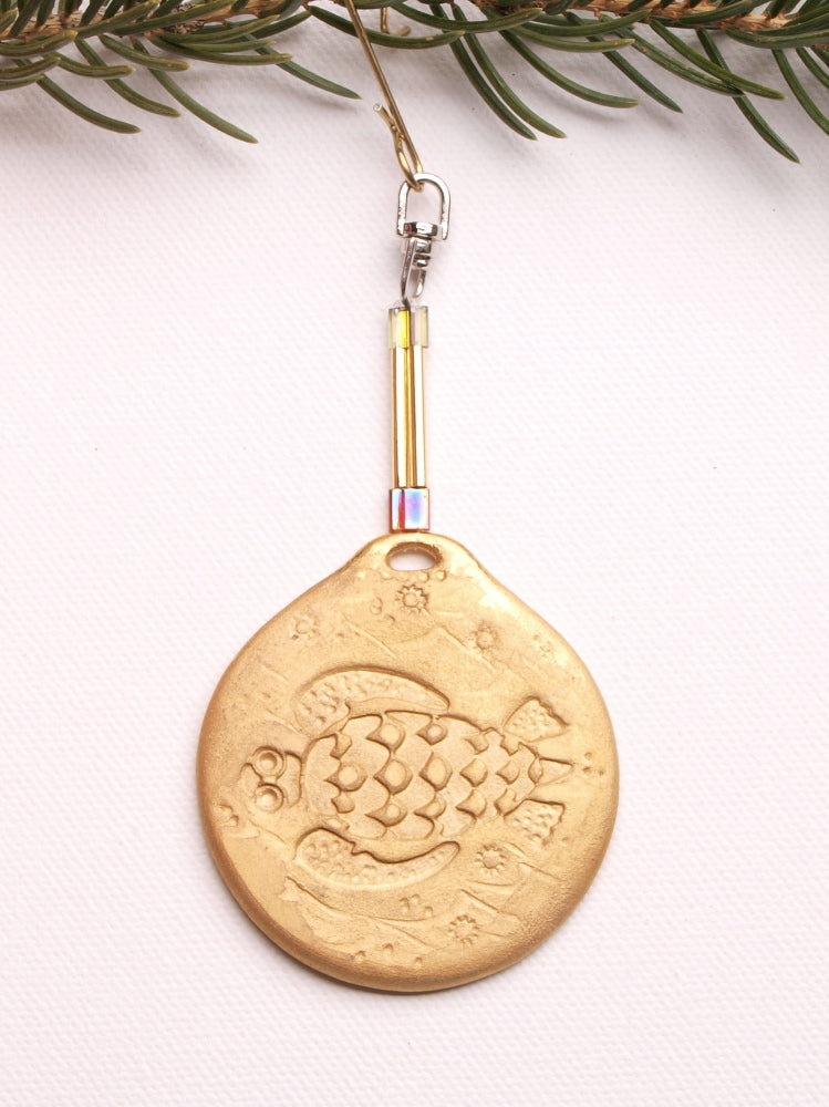 A Wonderful Golden Turtle: Embrace Coastal Magic with this Ceramic Collectable Ornament