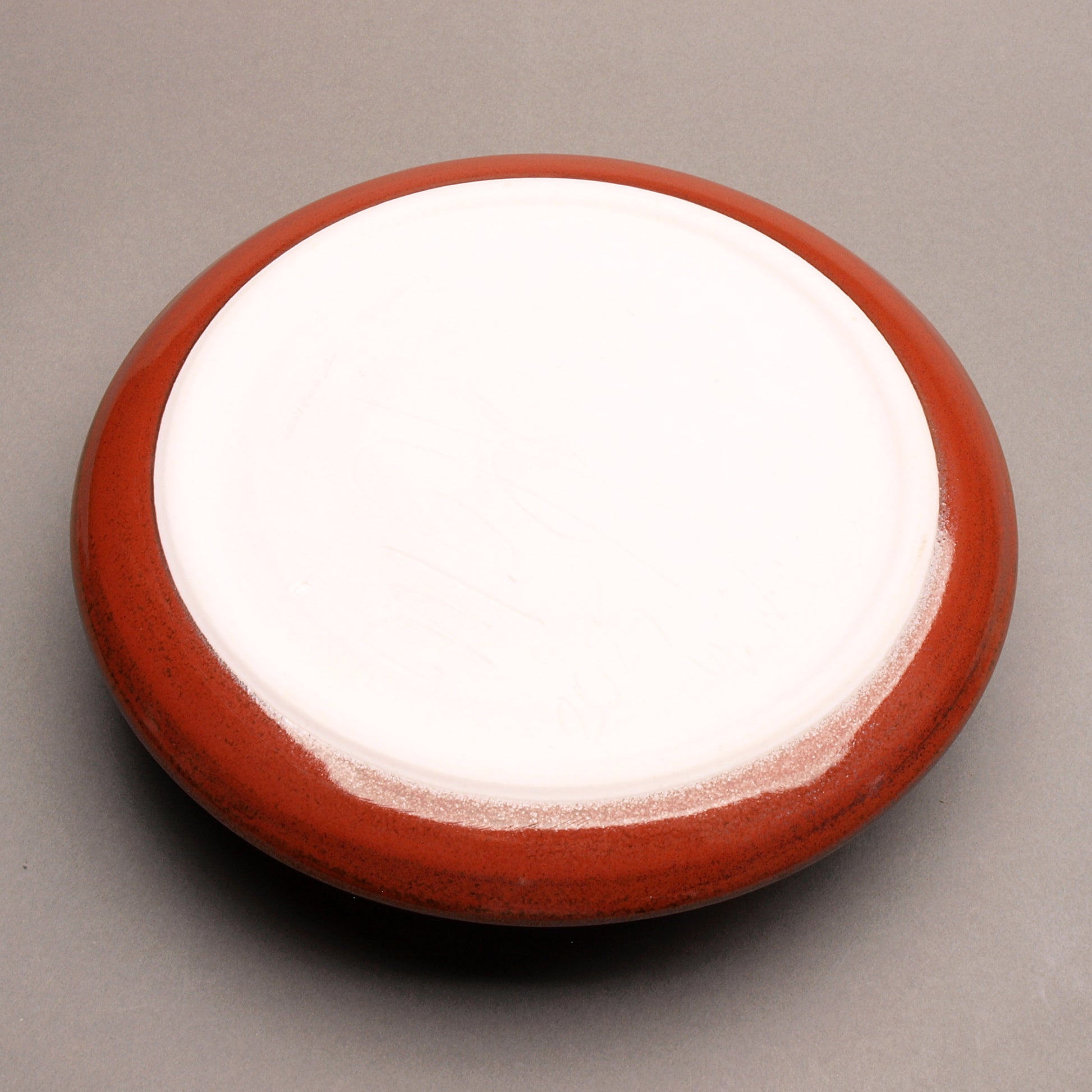 Serve in style with this handcrafted porcelain Chip & Dip featuring a sea turtle in swirling waves, glazed in vibrant turquoise and Ohata iron red. Created by potter Mike Hays on the wheel and fired to a vitreous finish at 2381°F, this piece combines artistry with durability. The iron red exterior contrasts beautifully with the glossy turquoise interior, highlighting the turtle motif and wave texture. Scratch-resistant, lead-free, and microwave/dishwasher safe, it’s both functional and decorative. Whether used for entertaining or as a centerpiece, this chip-and-dip bowl brings coastal charm and timeless craftsmanship to any table. Each piece is sanded and finished on the underside, showcasing the care and precision of true porcelain work.
